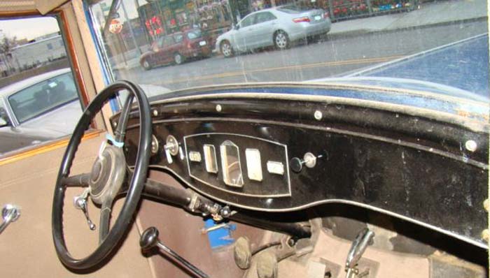 We Reveneered and Refinished the Door Panels to compliment the painted on "woodgraining" that was already done on the metal dashboard. |